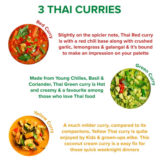 Thai Dhamaka Combo | Red, Yellow, Green Paste (50g x 3) + Coconut Milk Powder (50g x 3)