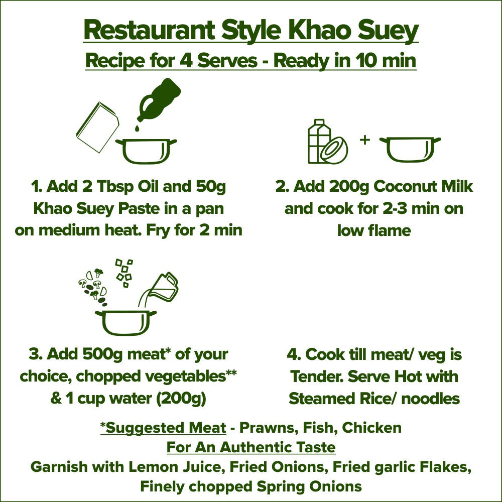 - Make Burmese Khao Suey Curry with Chicken, Fish, Prawns, Paneer, Tofu, exotic vegetables like Yellow/Red Capsicum, Broccoli, Mushroom & Sweet corn. Serve with Rice, hakka, pad thai or egg noodles.