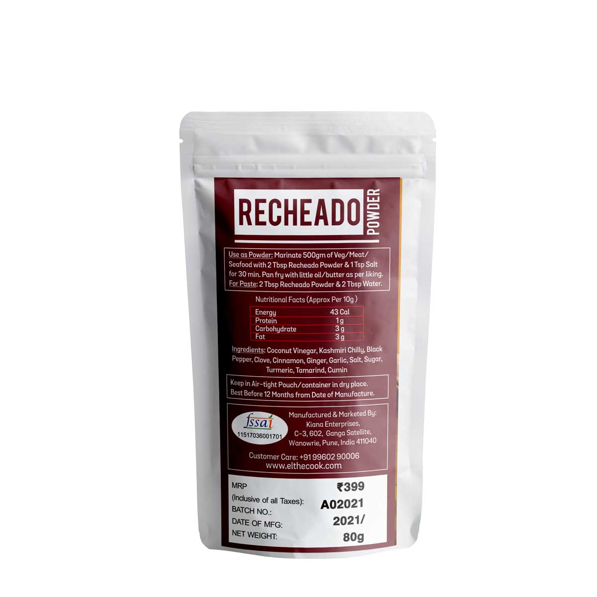 - Crafted with Premium Natural Spices & Pure Goa Coconut Vinegar. EL The Cook Recheado Masala can be used to make mouthwatering fish and seafood dishes.