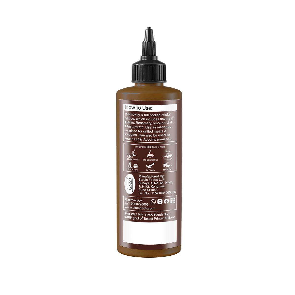 | Ingredients | Smoked Chilli, Jaggery, Mustard, Garlic, Soya, Salt, Black Pepper, Tomato Paste, Vinegar, Rosemary, Thyme, Oregano, Stabiliser INS 415, INS 631, Preservative INS 211 |
